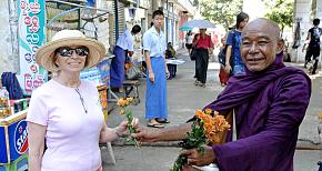 Indochina Odyssey Tours, and more specifically, Yeliz our coordinator, created a wonderful tour of Yangon, our first stop in Myanmar. Our terrific guide, Han, initially gave us a brief tour of the city after arriving in the afternoon before taking us to dinner at the FABULOUS floating Karaweik restaurant, This is a must-see. Not only excellent food, but their show was an incredible display of culture, costumes, and dancers. There are so many sights to see but the ultimate visit site is the Shwedagon Pagoda. Get there late afternoon and stay until dark and see the changing of the colors. Crowds of local people add to the color of the experience. It was where Kerry was named Myu Myu and I was named Win Tan. It would be easy to write a short story about all we saw, including a rare White Elephant, but your being there is better than being told about it. Thanks again, Yeliz.